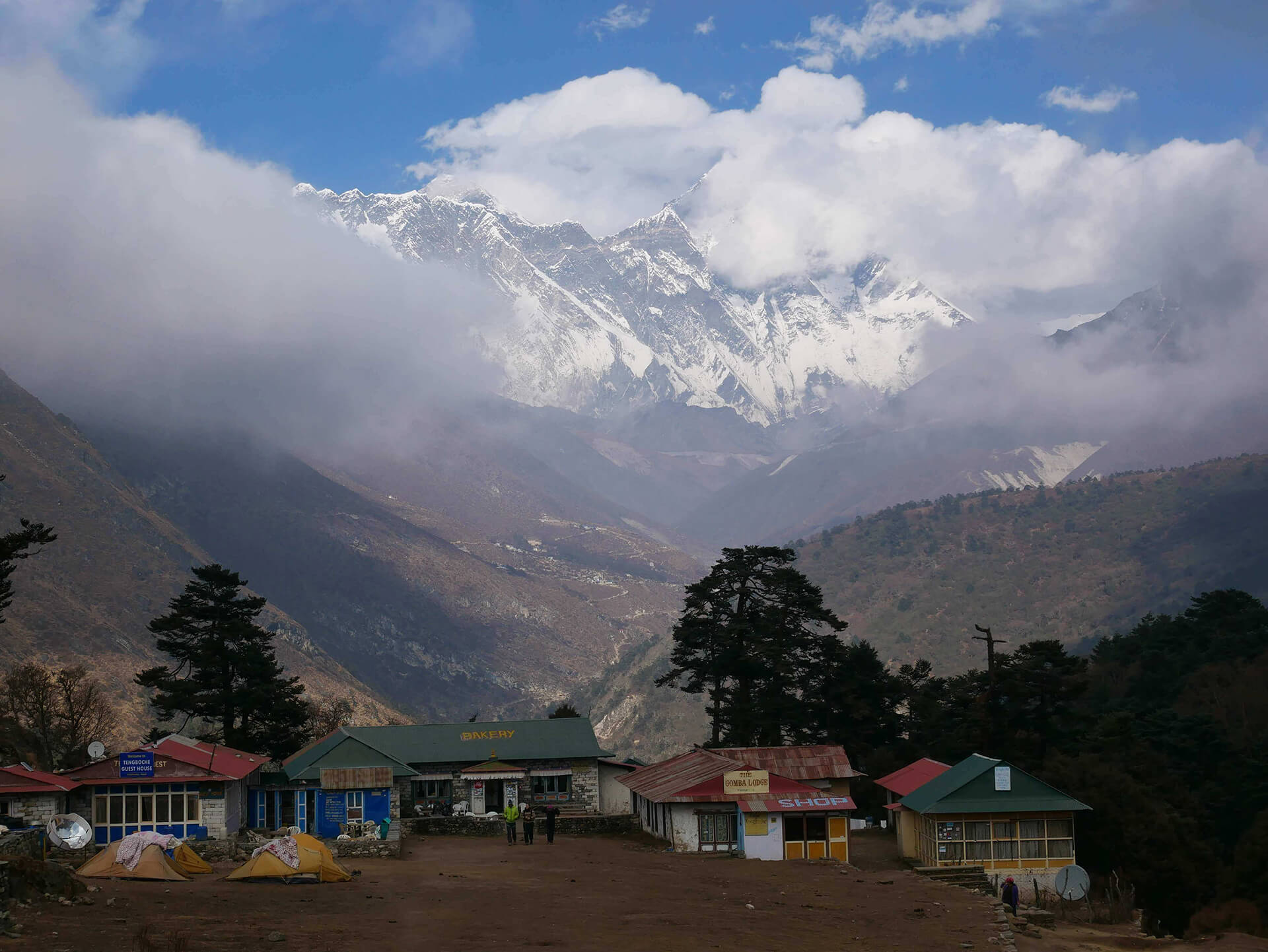 We start our downhill walk to Pangboche and continue further down to Deboche. From here we walk uphill to the crest of the ridge to the monastery at Tengboche. We then descend to Phunki Tenga. Re-crossing the river we have a last sustained pull back up to Kyangjuma and then it’s along and around to Namche.